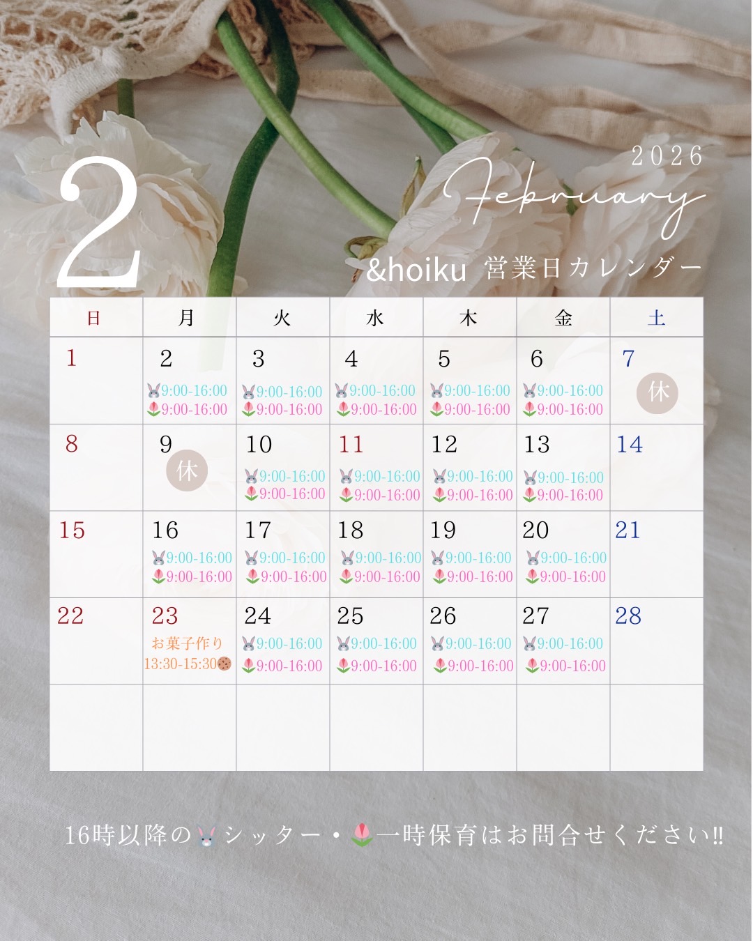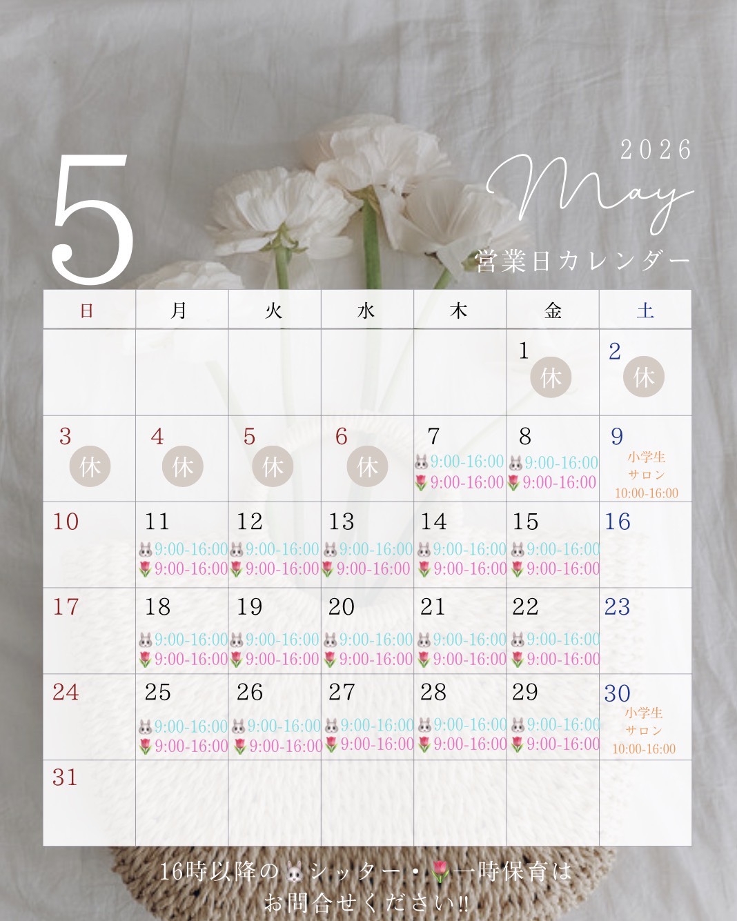 ※1ヶ月より先のご予約や営業時間外の託児はお問い合わせください。